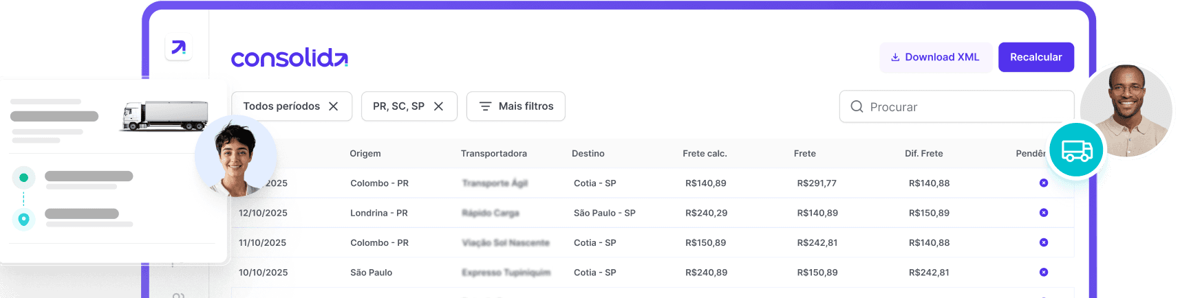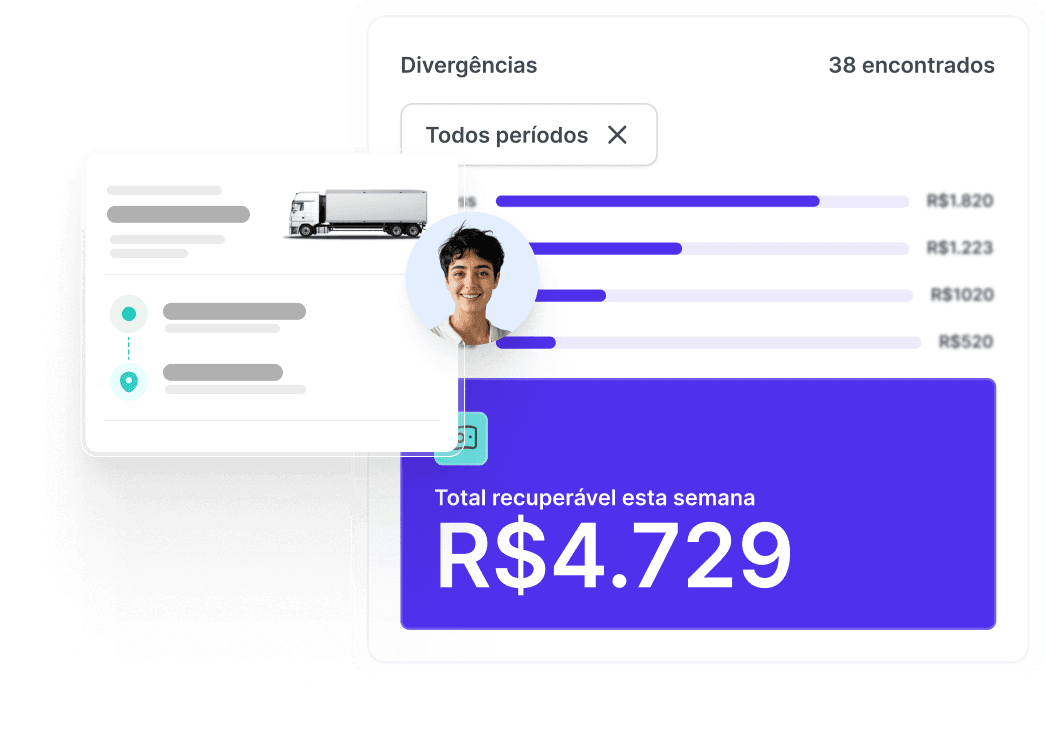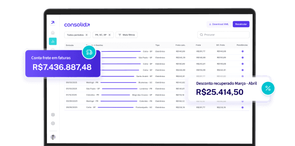 Audita CT-e, NF-e e Fatura. Identifique divergências ANTES que virem problema. Recupere até 5% em economia de conta frete.